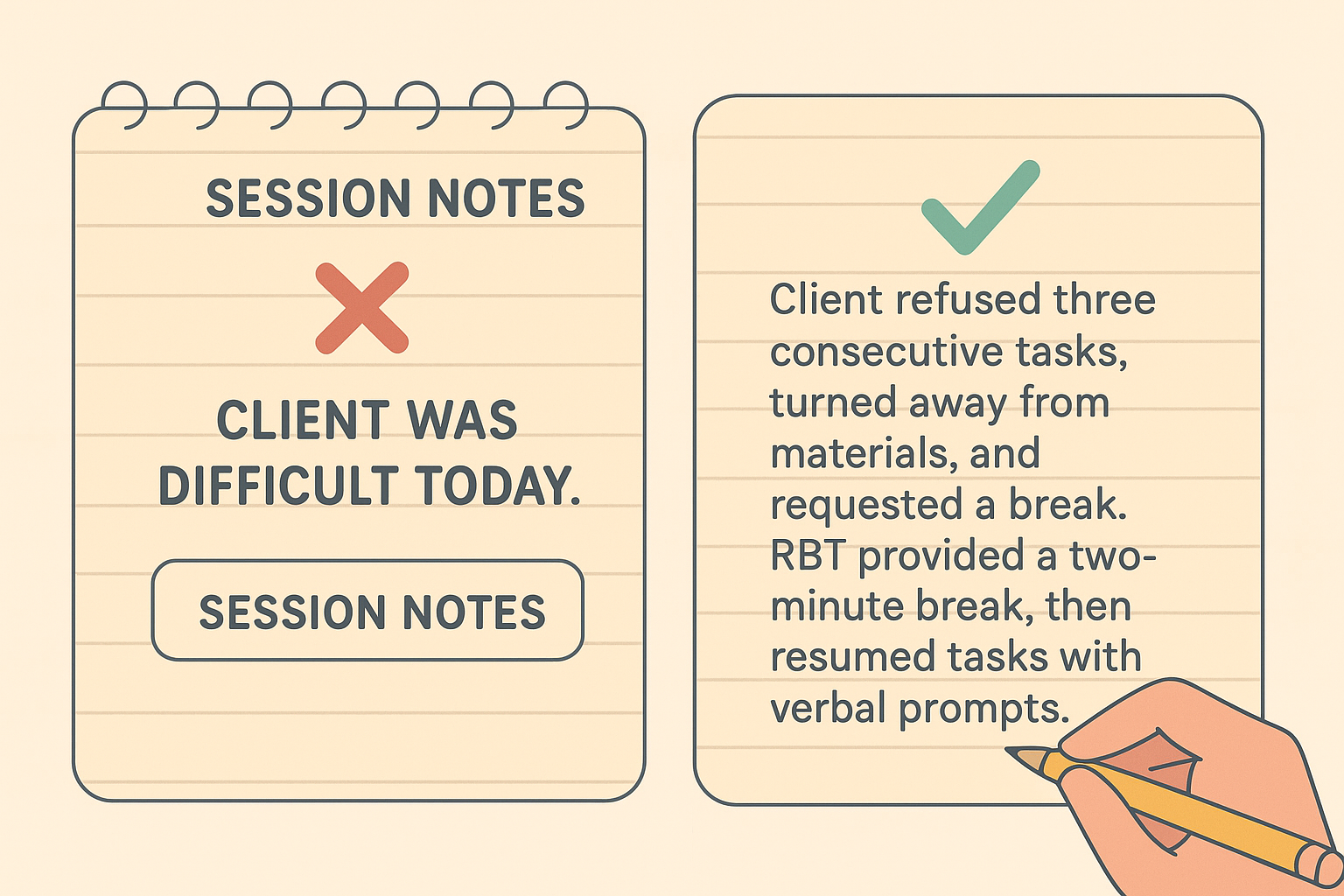 Good documentation isn’t just about numbers or checkboxes. It’s about understanding behavior within context and telling the client’s story through objective observation.