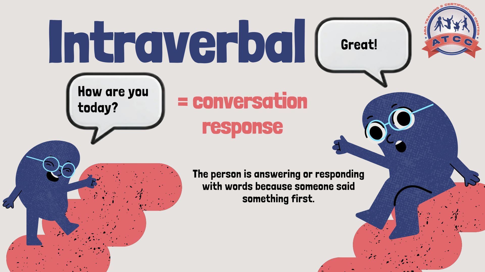 An intraverbal happens when a person responds to someone else’s words, but the answer is not directly copied.