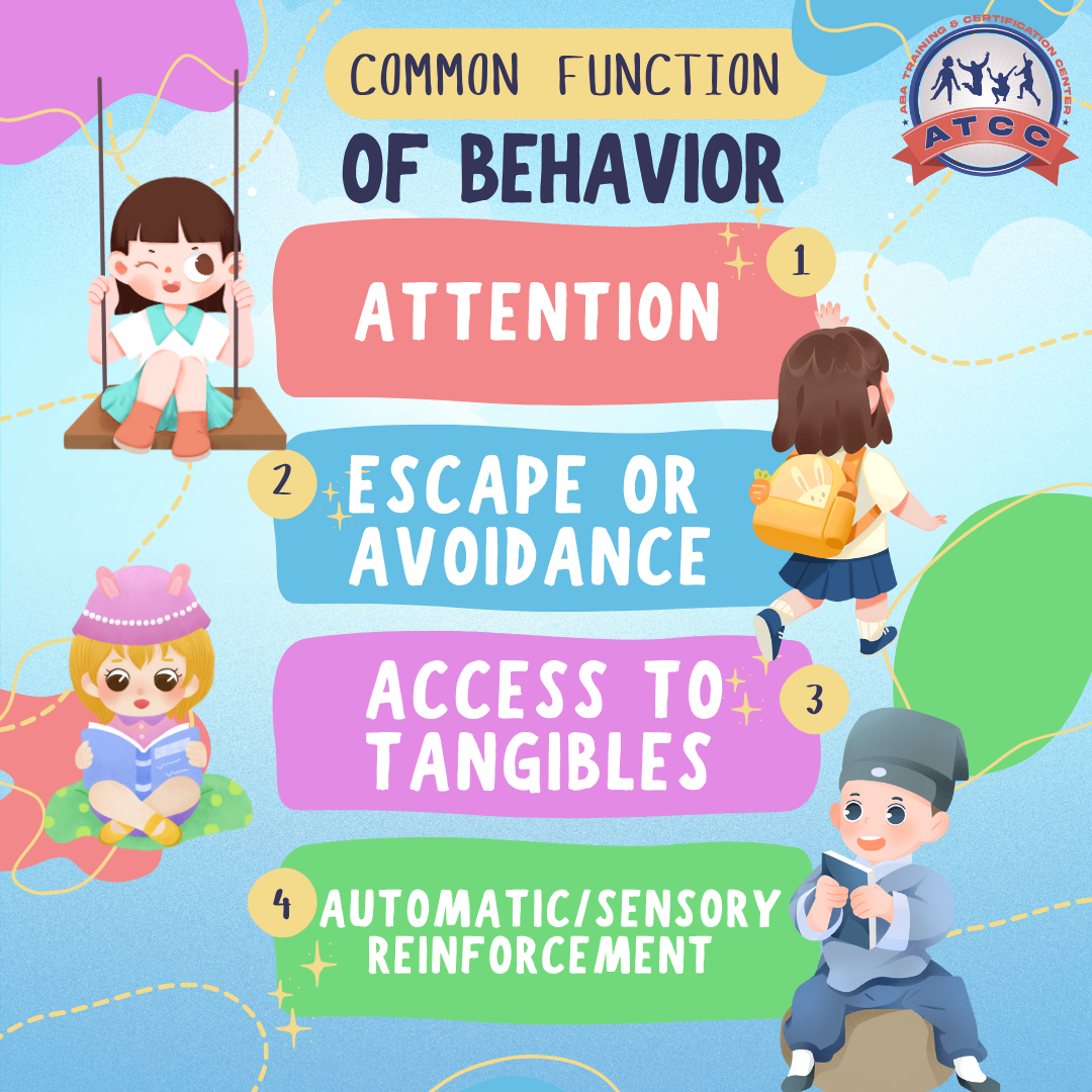 Learn the four common functions of problem behavior (SEAT: Sensory, Escape, Attention, Tangible) in this preview from the ATCC 2026 RBT® Training (3rd Edition). Discover why behaviors happen and how RBTs can apply ABA strategies to reduce problem behaviors and teach positive alternatives. Perfect for RBT® exam prep and ABA learners.